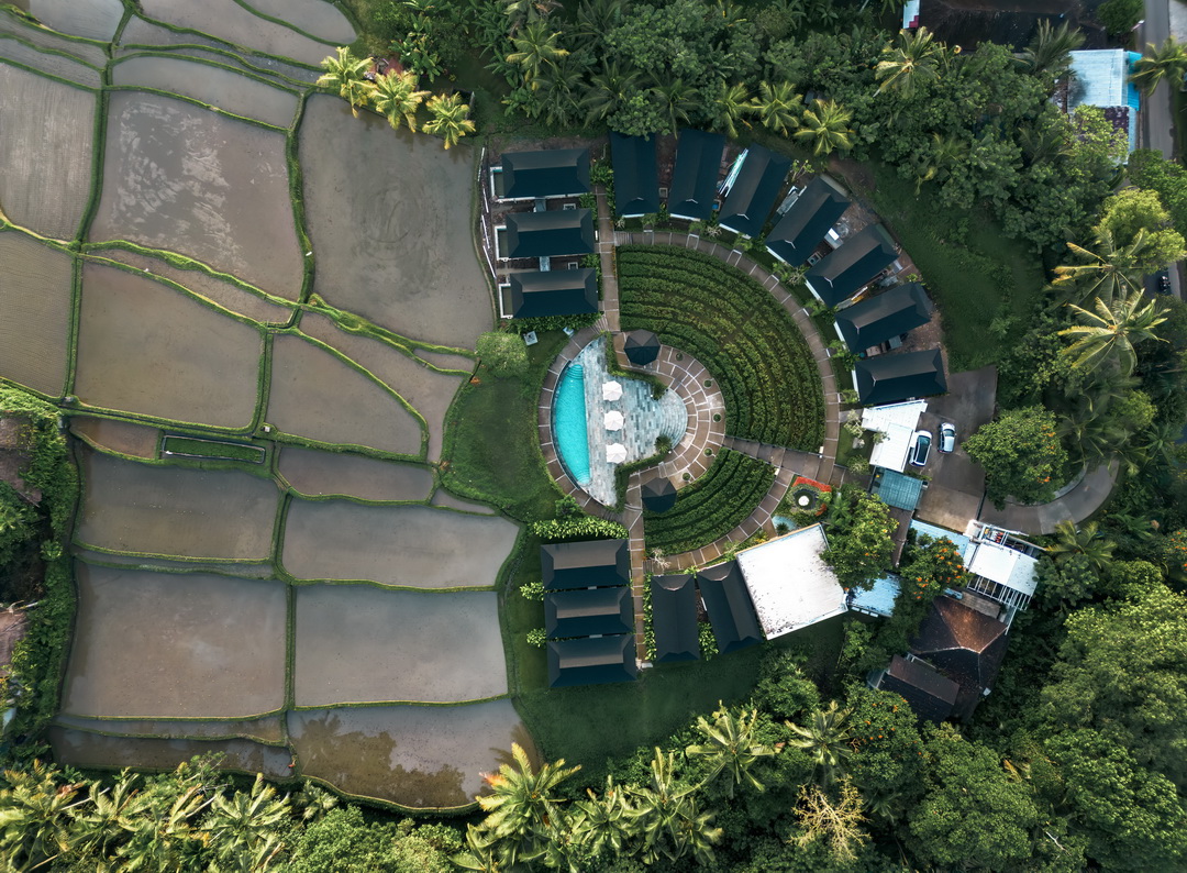 Tanada Resort offers an elegant retreat surrounded by lush tropical gardens, features a stunning infinity swimming pool overlooking greenery, spacious terraces and thoughtfully designed spaces that create a calm and inviting atmosphere.